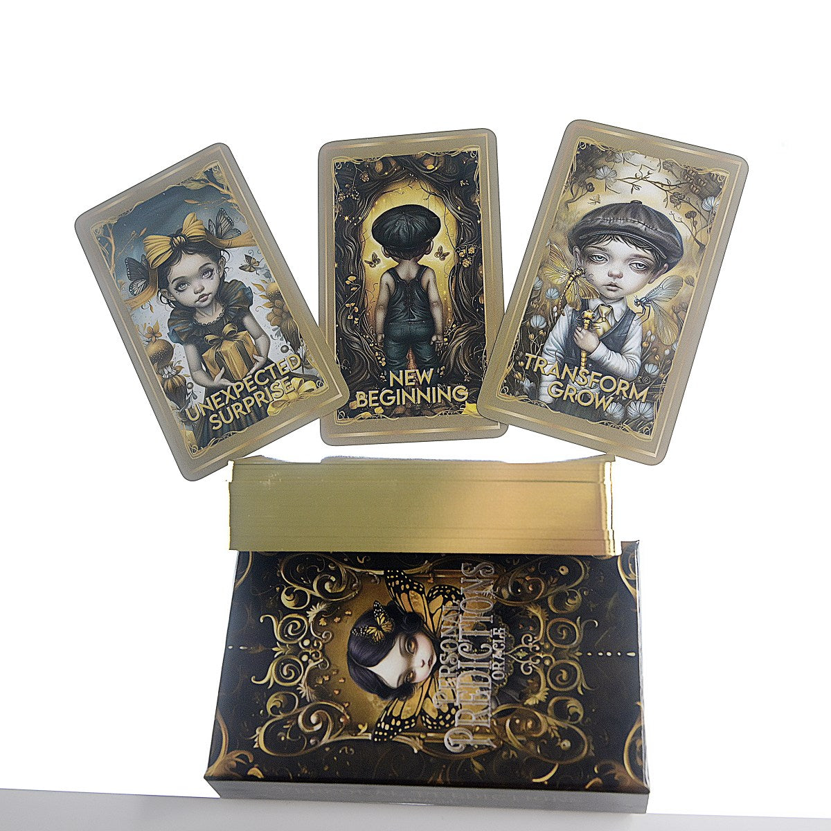 Introducing the Personal Predictions Oracle Deck—a luxurious collection of 80 high-quality oracle cards, elegantly adorned with a stunning gold edge. Designed to provide profound insights and accurate predictions, this deck helps you navigate life's upcoming events with clarity and confidence. Each card features exquisite artwork and superior craftsmanship, making it not only a powerful divination tool but also a beautiful addition to your collection. Unveil the mysteries of your future and enrich your intuitive journey with the Personal Predictions Oracle Deck—your guide to what lies ahead.